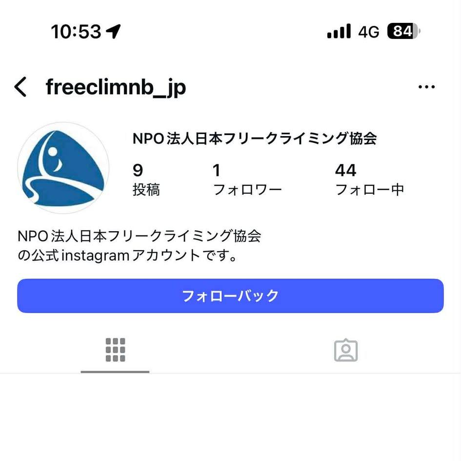 日本フリークライミング協会を語る偽アカウントがinstagramで発見されました。